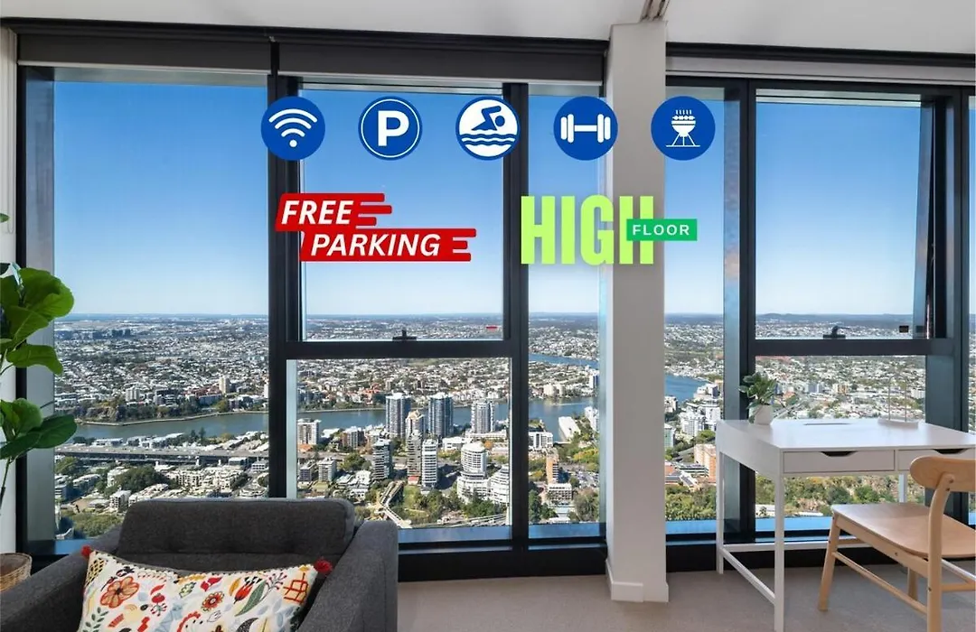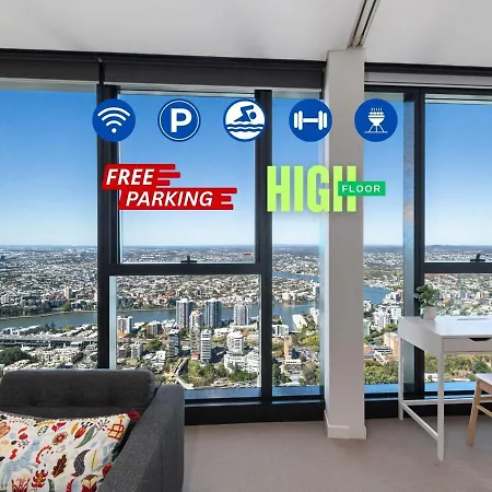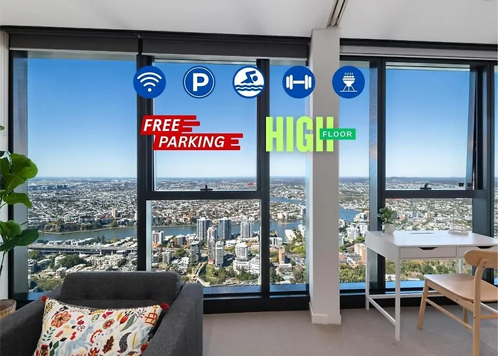 Sky-High Landmark River & Bay View 2Br Cbd Free P Brisbane apartment is located just 0.8 km from Brisbane Central train station and only a 5-minute walk from Queensland Treasury Corporation. Guests can lounge by a swimming pool before taking a cooling dip.